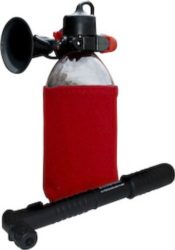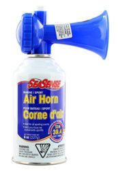 This air horn is 8 ounces. An easy to operate button horn, great for sports officials, coaches and referees, while meeting the needs of the avid sports fan. Horn