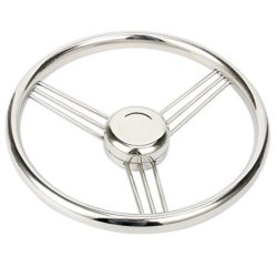 High quality stainless steel sports style wheel is highly durable to resist the harsh marine environment. Attractive three spoke design with turning knob. 13 1/2″ diameter high quality 3