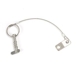 New Stainless Steel Quick Release Pin – Repleaces screws in deck hinge. The diameter of the ring is 1 inch. The diameter of pin is 1/4 inch. The length